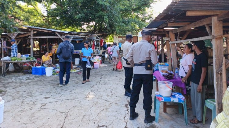 Kegiatan patroli dan pengamanan pasar merupakan kegiatan rutin Polsek Rote Tengah dengan tujuan untuk mewujudkan rasa aman dan nyaman kepada para pengunjung pasar dalam melakukan transaksi jual beli atau berbelanja kebutuhannya sehari hari.