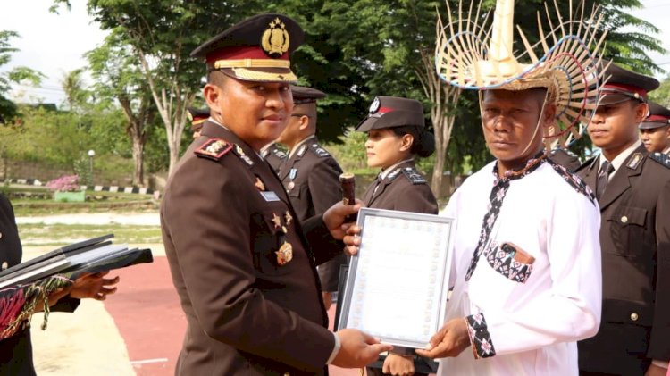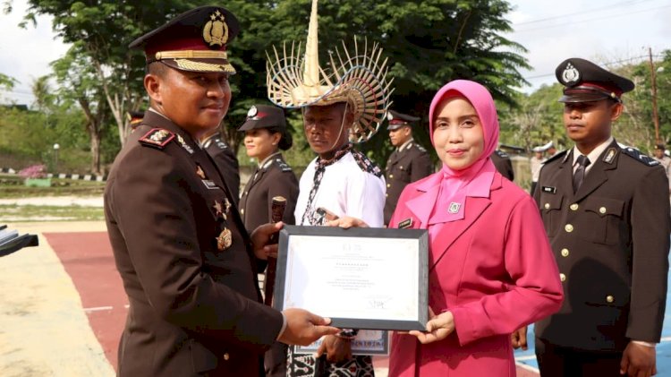 Aiptu Agus Salim.,S.H dengan Prestasi melaksanakan tugas diwilayah perbatasan dan pulau kecil terluar tanpa pelanggaran, Ny Yuli Mardiono Ketua Bhayangkari Cabang Rote Ndao memperoleh penghargaan karena menjadi inspirasi dalam rangka HKGB ke-73 Tahun 2025 tingkat Polda NTT.