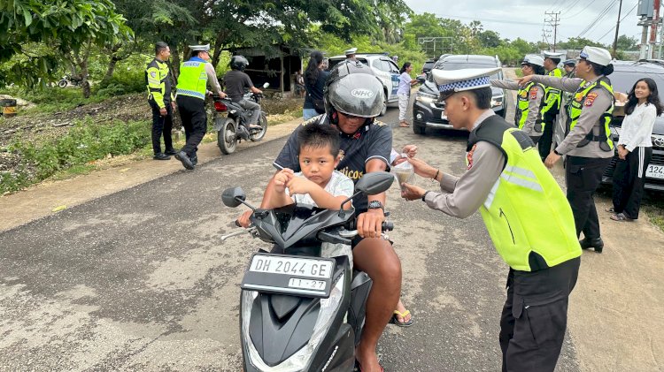 Satuan Lalu Lintas Polres Rote Ndao Bagi Takjil Kepada Pengguna Jalan, Wujud Kepedulian di Bulan Ramadhan 1447 H