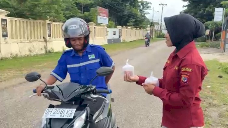 Pembagian takjil bagi masyarakat juga melibatkan pengurus Bhayangkari Cabang Rote Ndao yang terlibat aktif membagikan takjil bagi masyarakat. (BDN_23)