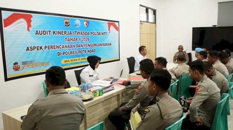 ROTE. Pelaksanaan audit Kinerja Tahap I Aspek Perencanaan dan pengorganisasian dilaksanakan oleh Itwasda Polda NTT di Mapolres Rote Ndao. Untuk Tim Auditor yang melakukan Audit Kinerja di Mapolres Rote Ndao dengan Ka Tim KOMBES POL FX Irwan Arianto,S.IK.,M.H bersama AKP Diny Khlotilde.,S.H, AKP Salfredus Sutu.,S.H, AKP Anas, IPDA I Wayan Panca dan BRIPTU Frans Mrsakh Soplanit.