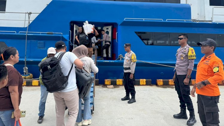 LOBALAIN. Personel Polsek Lobalain melaksanakan pengamanan dan pemantauan embarkasi dan debarkasi penumpang lintas Kupang - Rote PP melalui pelabuhan Baa, Kegiatan kepolisian yang dilakukan menyesuaikan dengan pelayanan angkutan penumpang oleh Kapal Express Bahari 8e. Minggu (22/03/2026).