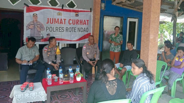 LOBALAIN. Kegiatan Jumat Curhat dilakukan oleh Polres Rote Ndao bersama masyarakat di Desa Persiapan Nitaso Kecamatan Lobalain Kabupaten Rote Ndao. Kapolres Rote Ndao AKBP Mardiono.,S.ST.,M.K.P diwakili oleh Kabag Ops.Polres Rote Ndao AKP Victor Hari Saputra.,S.Pi.,M.Si dan didampingi oleh Kasat Binmas Polres Rote Ndao AKP Frits O Matly, Kasat Narkoba Polres Rote Ndao IPTU I Komang Suita dan Kapolsek Lobalain IPDA Djony Elvis Pada.,S.H. Jumat (10/04/2026).