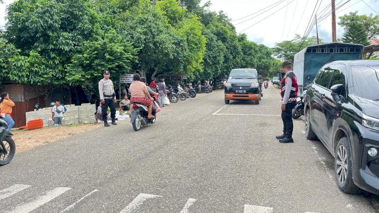 Mengawali pelayanan kamtibmas bagi masyarakat, Personel Polsek Rote Barat melakukan pengamanan dan pengaturan arus lalu lintas diarea pasar Sedeoen Kecamatan Rote Barat Kabupaten Rote Ndao.