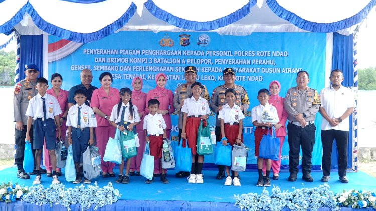 Bansos Oleh Kapolda NTT Sekalugus Penyerahan Enam Unit Perahu Bagi Siswa Dusun Airani Sebagai Bentuk Polri Peduli Pendidikan