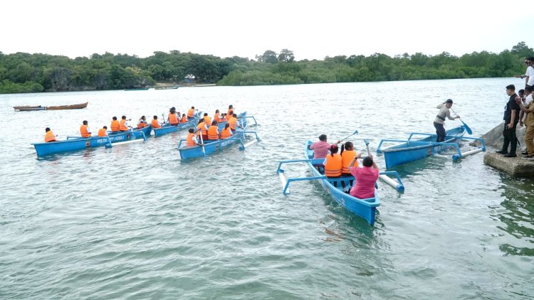 Setelah penyerahan Bansos, Perahu dan perlengkapan bagi para pelajar, Kapolda NTT Irjen Pol Dr Rudi Darmoko.,S.IK.,M.Si bersama PJU Polda, Kapolres Rote Ndao AKBP Mardiono.,S.ST.,M.K.P dan Kapolsek Jajaran memantau perlintasan para siswa siswi menggunakan ke-6 unit dari pelabuhan bokroulean menuju Dusun Airani Desa Tenalai Kecamatan Landu Leko Kabupaten Rote Ndao.