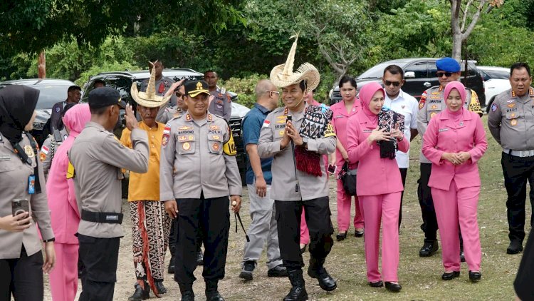 Kunjungan kerja di Desa Daiama, Kapolda NTT Irjen Pol Dr Rudi Darmoko.,S.IK.,M.Si didampingi oleh Ketua Bhayangkari Daerah NTT Ny Vily Rudi Darmoko bersama sejumlah pejabat utama Polda NTT diantaranya Direskrimum Polda NTT Kombes Pol Sigit Haryono.,S.IK.,S.H.,M.H, Dir Poalirud Polda NTT Kombes Pol Irwan Deffi Nasution.,S.IK.,M.H, Dirkrimsus Polda NTT Kombes Pol Hans Rachmatulloh Irawan,S.IK.,M.H dan Dir Lantas Polda NTT Kombes Pol Dedy Eka Jaya Helmi.,S.IK.,M.H.