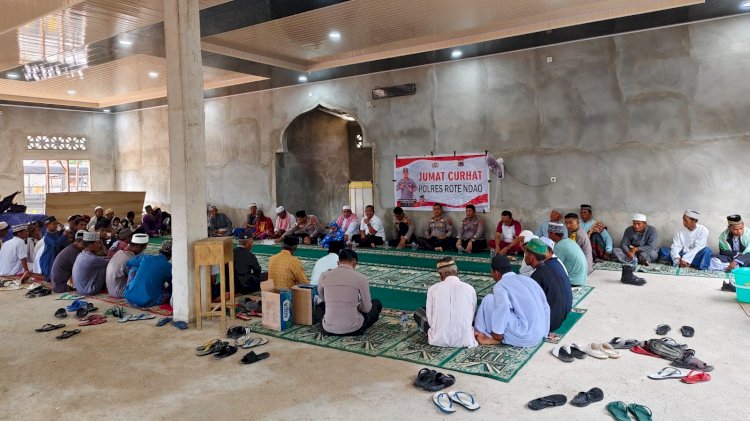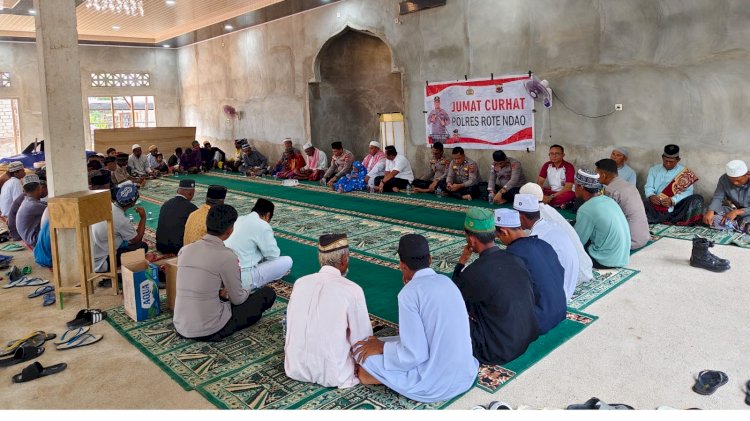 PANTAIBARU. Kegiatan Jumat Curhat yang merupakan sarana untuk berinteraksi secara langsung dengan masyarakat oleh Kapolres Rote Ndao AKBP Mardiono.,S.ST.,M.K.P digelar bersama Jemaah Mesjid Ar Rahman Oenggae Kecamatan Pantaibaru Kabupaten Rote Ndao. Jumat (12/12/2025).