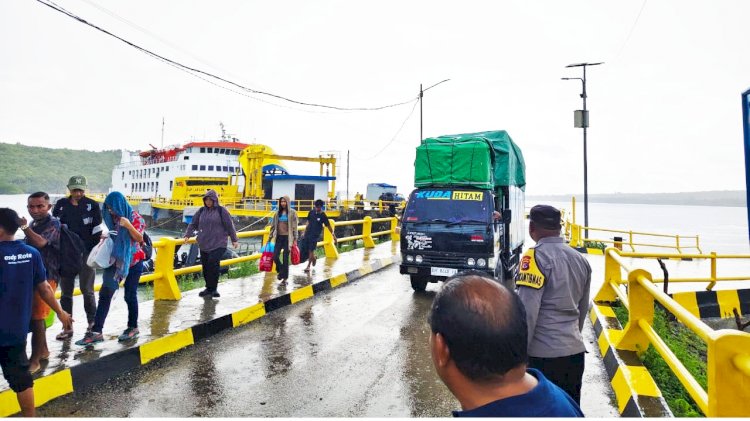PANTAIBARU. Pelabuhan Pantaibaru yang merupakan salah satu pintu gerbang masuk dan keluar distribusi kebutuhan masyarakat, angkutan kendaran dan penumpang lintas Kupang - Rote menjadi sasaran pelaksanaan pengamanan yang dilakukan secara rutin oleh personel Polsek Pantaibaru. Minggu (30/11/2025).