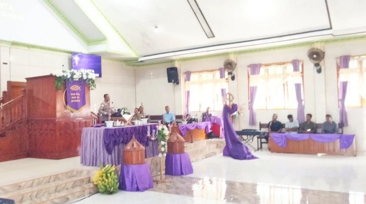 ROTE BARAT. Kegiatan minggu kasih merupakan program Polsek Rote Barat untuk melaksanakan ibadah bersama sekaligus memberikan himbauan kamtibmas, Hari ini dilaksanakan bersama jemaat GMIT Ebenhaezer Sedeoen Kecamatan Rote Barat Kabupaten Rote Ndao. Minggu (29/03/2026).
