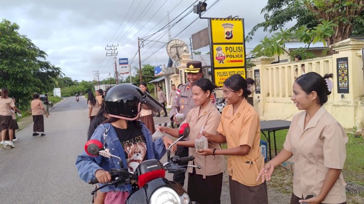 Kolaborasi Polres Rote Ndao Bersama Pelajar Berbagi Takjil Jelang Buka Puasa