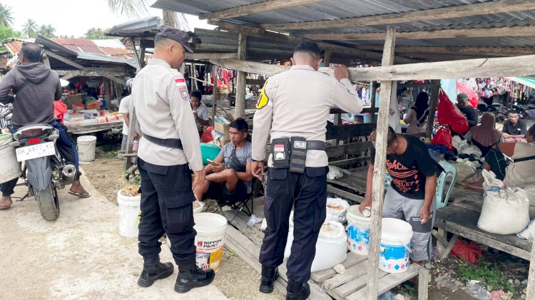 ROTE BARAT LAUT. Guna memastikan keamanan dan kenyamanan masyarakat salama beraktifitas diarea Pasar Busalangga, Personel Polsek Rote Barat Laut melakukan patroli dialogis dan pengamanan untuk menjamin kamtibmas tetap kondusif. Sabtu (28/02/2026).