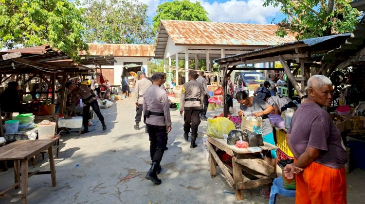 Dipimpin oleh Aiptu Asis A Tamin bersama Aipda Julius Taniu,Bripka Simon Muskanan dan Bripda Milan Sinlae, Melakukan Patroli dialogis diseluruh area pasar dan berinteraksi dengan masyarakat sekaligus memberikan himbauan kamtibmas.