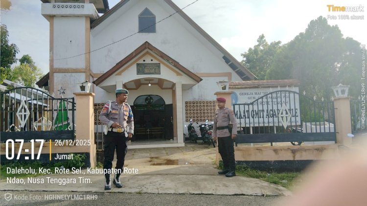 ROTE. Personel Polres Rote Ndao yang terlibat dalam Operasi Lilin Turangga 2025 melaksanakan pengamanan kegiatan Ibadah Natal di seluruh Gereja yang ada diwilayah hukum Polres Rote Ndao, Kamis (25/12/2025).