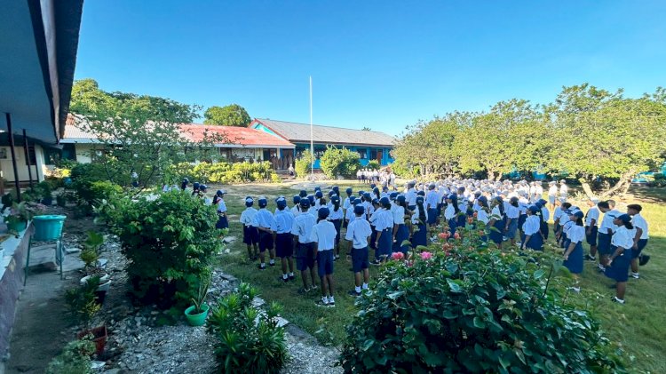 ROTE TENGAH.Bertempat di Lapangan Upacara UPTD SMPN 1 Rote Tengah, berlangsung upacara bendera yang dihadiri para guru, staf pengajar serta sekitar 150 siswa. Bertindak sebagai inspektur upacara adalah PS. Kanit Binmas Polsek Rote Tengah Polres Rote Ndao AIPTU Arthus Klaas, S.I.P. Senin (13/04/2026)
