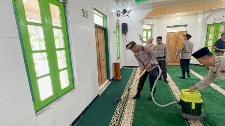 Wakapolres Pimpin Aksi Bersih Bersih Mesjid, Pasca Apel Bersama di Polsek Lobalain